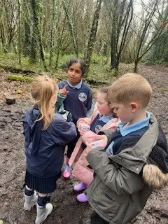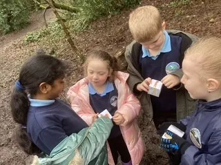 Miss Scott's Primary 3 class have great fun in the woods building a Hideout for a Superhero