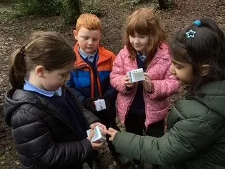 The children were conducting a leaf identification task. The children had to find the leaf of their house.