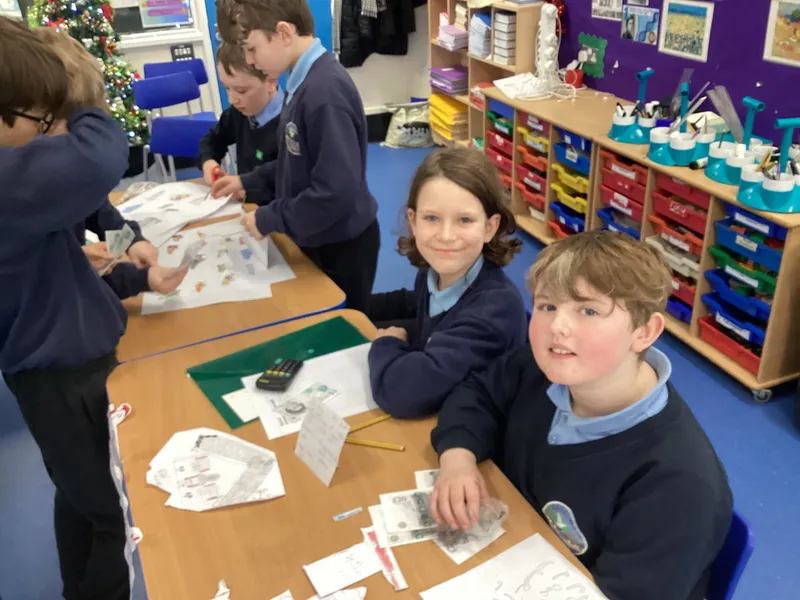 P6 this week taking part in our Christmas markets in numeracy where we have been learning to use money with business costs and profits.