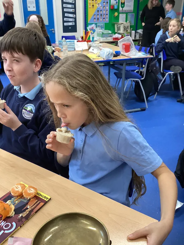 P7s learned about weight for the Numeracy Week P7s. As they are in the middle of the Victorians topic, they were given ingredients for gruel to measure out, using traditional balancing scales. They got to taste the gruel too. Some liked it more than others.