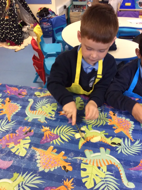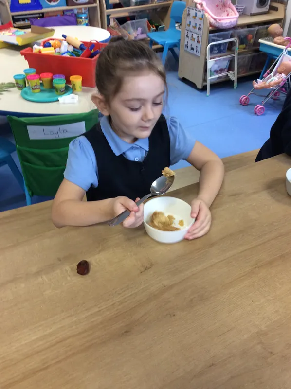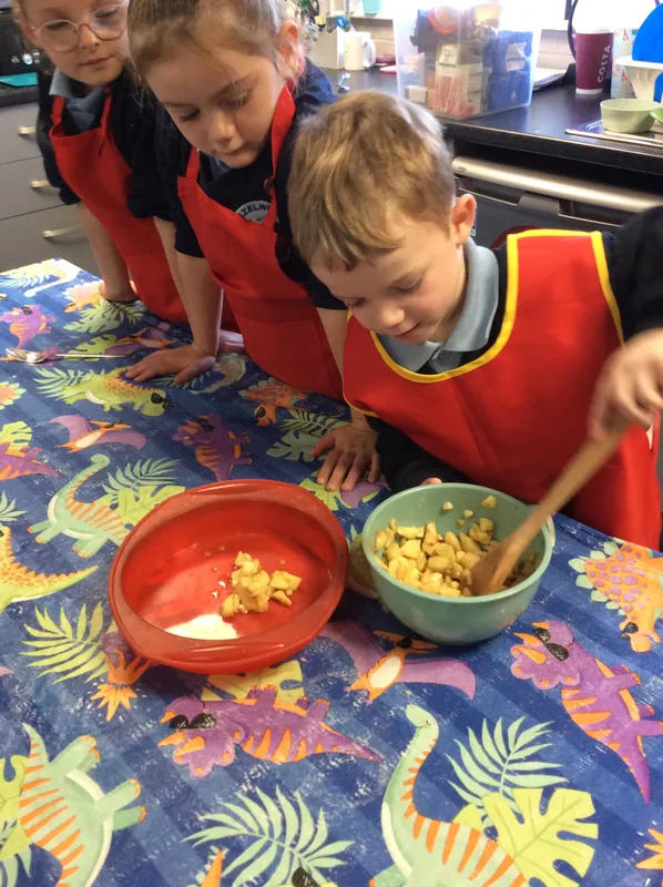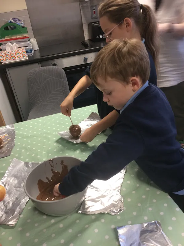 Cookery: we have made milkshakes, apple crumble, sausage rolls and chocolate apples! Yummy!