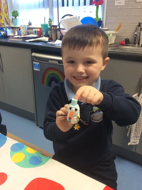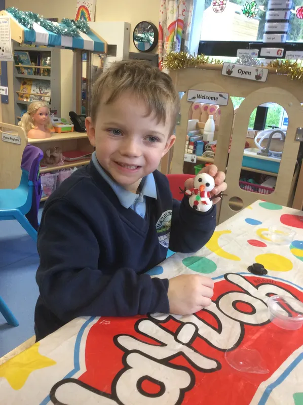 We used air clay to make snowmen. We then dressed them in tiny hats and scarves!
